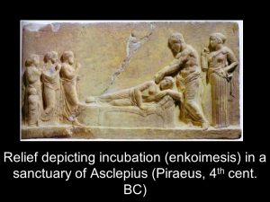 κυρίως οι επισκέψεις του Ασκληπιού στα όνειρα εκείνων που περνούσαν τη νύκτα στα εγκοιµητήρια της