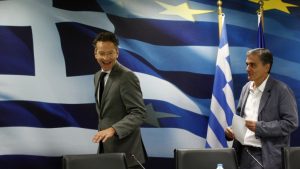 Ο υπουργός Οικονομικών Ευκλείδης Τσακαλώτος (Δ) με τον πρόεδρο της ΕΥΡΩΟΜΑΔΑΣ (EUROGROUP) & υπουργό Οικονομικών της Ολλανδίας Jeroen Dijsselbloem (Α) σε συνέντευξη τύπου μετά την συνάντησή τους, τη Δευτέρα 25 Σεπτεμβρίου 2017, στο Υπουργείο. ΑΠΕ-ΜΠΕ, ΑΛΕΞΑΝΔΡΟΣ ΒΛΑΧΟΣ SEPTEMBER 30, 2017