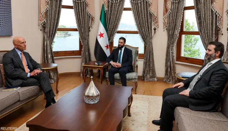 φωτογραφία: η πέτρα του σκανδάλου: ο ειδικός απεσταλμένος των ΗΠΑ για τη Συρία, Τόμας Μπαράκ, συναντάται με τον μεταβατικό πρόεδρο της Συρίας, Άχμαντ αλ-Σαράα, και τον υπουργό Εξωτερικών της Συρίας, Άσαντ αλ-Σαϊμπάνι, στην Κωνσταντινούπολη, στις 24 Μαΐου 2025 – AFP