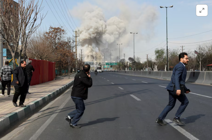 Άνθρωποι τρέχουν καθώς καπνός υψώνεται μετά από έκρηξη, εν μέσω της σύγκρουσης ΗΠΑ–Ισραήλ με το Ιράν, στην Τεχεράνη, Ιράν. Majid Asgaripour/WANA μέσω REUTERS