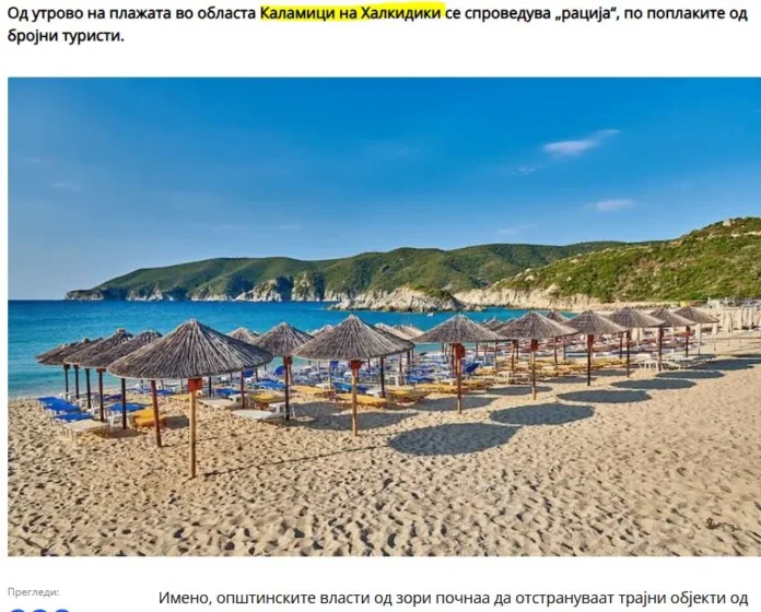 «Επιδρομή» βρίσκεται σε εξέλιξη στην παραλία στην περιοχή Καλαμίτσι της Χαλκιδικής από το πρωί, μετά από παράπονα πολυάριθμων τουριστών, γράφουν τα μέσα ενημέρωσης των Σκοπίων.