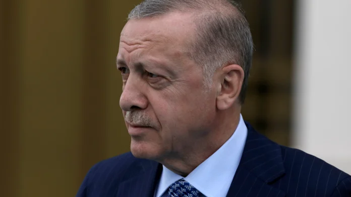 Ο Τούρκος Πρόεδρος Ρετζέπ Ταγίπ Ερντογάν απεικονίζεται στην Άγκυρα, στην Τουρκία, στις 16 Μαΐου 2022.