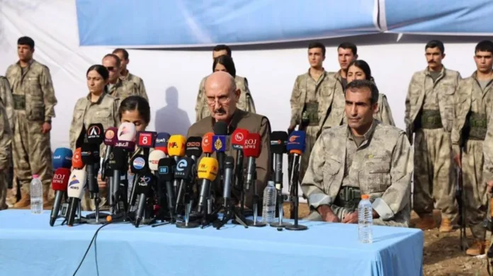 Με βάση τις αποφάσεις του 12ου Συνεδρίου και με την έγκριση του Ηγέτη Αμπντουλάχ Οτσαλάν, έχουμε ξεκινήσει την απόσυρση όλων των δυνάμεών μας από την Τουρκία. Μερικές από αυτές τις δυνάμεις βρίσκονται σήμερα εδώ και συμμετέχουν προσωπικά σε αυτή τη δήλωση. Λαμβάνουμε επίσης παρόμοια μέτρα κατά μήκος των συνόρων σε περιοχές ευάλωτες σε πιθανές προκλήσεις.