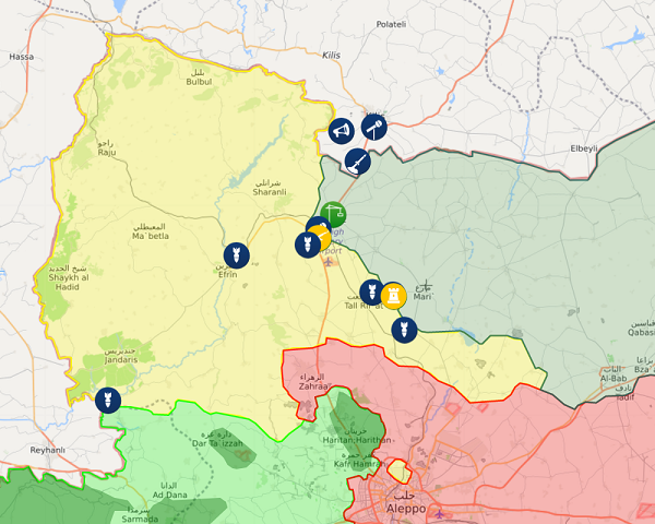 «Οι Κούρδοι υποπτεύονται πως ο τουρκικός στρατός και οι αντάρτες θα επιχειρήσουν να καταλάβουν την Ταλ Ριφάτ», σημειώνεται στο δημοσίευμα. Η συγκεκριμένη πόλη καταλήφθηκε από τις κουρδικές δυνάμεις τον Φεβρουάριο του 2016, όταν ο συριακός στρατός προήλαυνε σε αυτό το τμήμα της επαρχίας του Χαλεπιού.