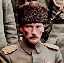 Στις πύλες της πόλης, ένα επιβλητικό πανό που φέρει το ομοίωμα του Ataturk. Μακρύτερα, γυναίκες που