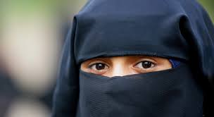 φορούν τη φορεσιά niqab (δεξιά), με γάντια, περπατούν στους δρόμους.