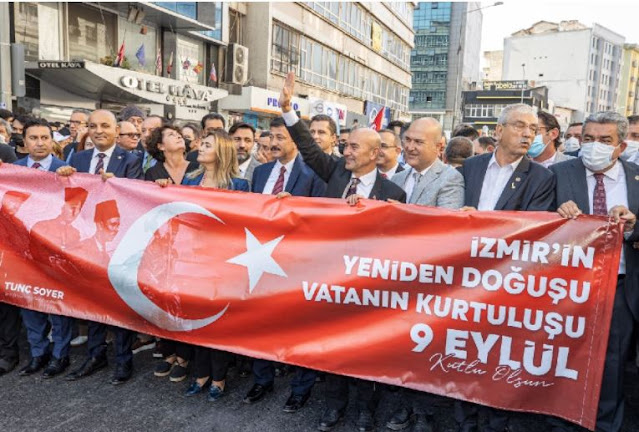 Ο μητροπολιτικός δήμαρχος της Σμύρνης Τουντς Σογέρ, μαζί με τους κατοίκους της Σμύρνης που έφεραν μια σημαία μήκους 350 μέτρων, περπάτησαν στη διαδρομή που ο τουρκικός στρατός εισήλθε στην πόλη στις 9 Σεπτεμβρίου 1922, από το μπροστινό τμήμα του αστυνομικού τμήματος Basmane έως την πλατεία Δημοκρατίας.