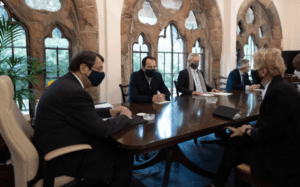 Ο Πρόεδρος της Δημοκρατίας κ. Νίκος Αναστασιάδης δέχθηκε την Ειδική Απεσταλμένη του Γενικού Γραμματέα των Ηνωμένων Εθνών για το Κυπριακό κα Τζέιν Χολ Λουτ, στο Προεδρικό Μέγαρο, στη Λευκωσία. ΓΤΠ, Σταύρος Ιωαννίδης
