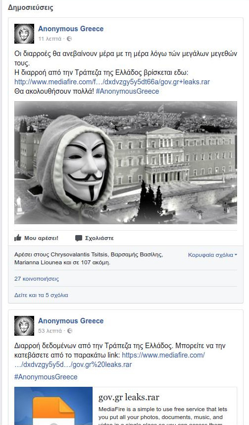 Οι Anonymous Greece είχαν προειδοποιήσει από τη Δευτέρα ότι σκοπεύουν να προχωρήσουν «προειδοποιήσεις», όπως έγραφε ανάρτησή τους.