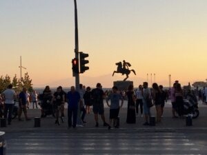 Με την ελληνική σημαία τυλιγμένη μπέρτα στους ώμους χοροπηδούσε η ανήσυχη μάνα φωνάζοντας: «κάτω τα χέρια απ’ τα παιδιά μας!». Αμέσως σκέφτηκα ότι θα έπεσε στην αντίληψή της κάτι τρομερό, κάτι θα συνέβη στα παιδιά της, κάτι μοιραίο που προσπαθεί φωνάζοντας να σταματήσει. Της τα άρπαξαν Τούρκοι, της τα διάλεξαν για άσεμνο τηλεπαιχνίδι, της τα πλεύρισαν έμποροι ναρκωτικών, έμπλεξε η κόρη της με παντρεμένο; Τίποτα απ’ όλα αυτά. Η ανήσυχη μάνα ανησυχεί για το κακό που θα’ βρει τα παιδιά της, αν φορέσουν μάσκα στο σχολείο. Μαζί είναι πολλές και πολλοί, κολλητά, σε απόσταση εγκαρδιότητας. Για να προσδώσουν μια νότα εθνικής σημασίας, η μάζωξη έγινε στο άγαλμα του Μεγαλέξαντρου, στο σημείο όπου τα βράδια δίνουν ρεσιτάλ άνεργοι λαϊκοί βάρδοι και εκτελούν ακροβατικά πιτσιρικάδες με πατίνια. Έχουν και τραπεζάκια για να μαζεύουν υπογραφές. Υπογραφές, γιατί; Γιατί προφανώς οι πεντακόσιοι συγκεντρωμένοι (κατά τις δικές τους εκτιμήσεις, οι οποίες τεντώνουν πάντα ένα τριάντα τα εκατό παραπάνω απ’ ό,τι κόβει ένα έμπειρο μάτι) γνωρίζουν καλύτερα από τους ειδικούς τους κινδύνους που κρύβει η χρήση μάσκας και ιδίως στην τρυφερή μαθητική ηλικία. Είναι πιο έξυπνοι από καθηγητές Πανεπιστημίου, πιο υποψιασμένοι από το μέσο αναγνώστη εφημερίδας κι έχουν ανεπτυγμένο ως εκεί που δεν παίρνει το αδούλωτο φρόνημα της φυλής. Όλοι είναι πρόβατα, εκτός από αυτούς τους πραγματικά δημιουργικούς και θαρραλέους νόες. Θα ομολογήσω την αμαρτία μου: μερικοί δήθεν έξαλλοι, μου θύμισαν τους σεμνούς συγκινημένους που μαζεύονταν αυθόρμητα λίγο παραπέρα, στο Λευκό Πύργο, για να σώσουν τη Μακεδονία με ντουντουκοφόρους κάτι γνωστές στις αρχές φυσιογνωμίες.