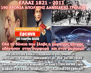Φτάσαμε στο σημείο να αποπληρώνουμε δάνεια της πρώτης περιόδου της Επαναστάσεως του 1821 μέχρι και την προηγούμενη δεκαετία, και οι κατ όνομα σύμμαχοί μας να κερδίζουν τεράστια ποσά από χρεολύσια κάθε χρόνο, χωρίς να κάνουν απολύτως τίποτα!