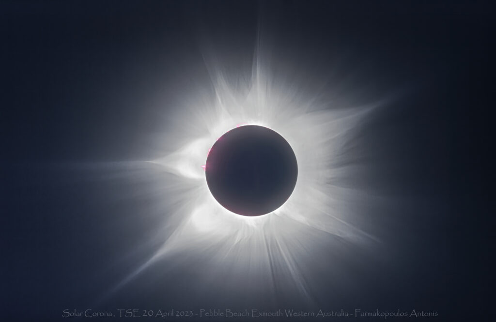 Εικόνα (3): Το ηλιακό στέμμα κατά την διάρκεια της ολικότητας της έκλειψης Ηλίου το 2023 στην Αυστραλία. Φωτογραφία: Αντώνης Φαρμακόπουλος.