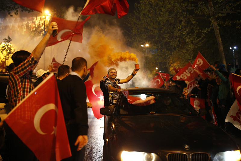 Αυτό δεν ήταν σίγουρα το ιδανικά επιθυμητό αποτέλεσμα που θα ικανοποιούσε τον Ταγίπ Ερντογάν: ναι μεν του ανοίγει το δρόμο προς την υπερεξουσία, αλλά δεν έχει τις διαστάσεις του θριάμβου που επεδίωξε στο δρόμο προς την κάλπη, ανεβάζοντας τους τόνους της ρητορικής του και βάλλοντας κατά πάντων στο εξωτερικό, στοχεύοντας στο εσωτερικό του ακροατήριο. Τα πανηγύρια των υποστηρικτών του «ναι» στο τουρκικό δημοψήφισμα δεν έχουν τον παλμό που θα ήθελε ο Ρετζέπ Ταγίπ Ερντογάν, ούτε και τη μαζικότητα.