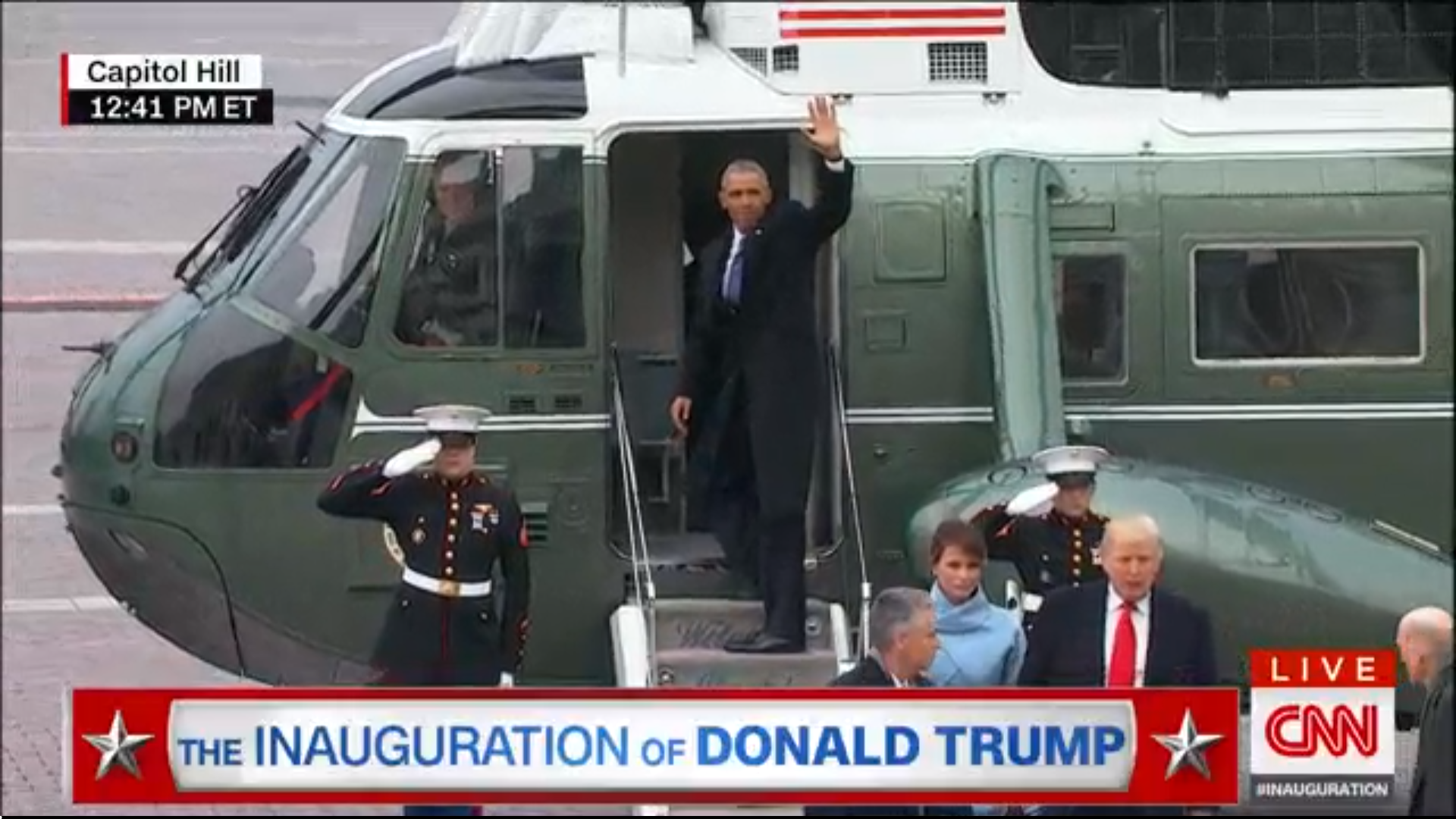 Στο μεταξύ μετά την ολοκλήρωση της τελετής της ορκωμοσίας το ζεύγος Ομπάμα θα αναχωρήσει, με ελικόπτερο, από το Καπιτώλιο για να αρχίσει την μετά τον Λευκό Οίκο ζωή του.