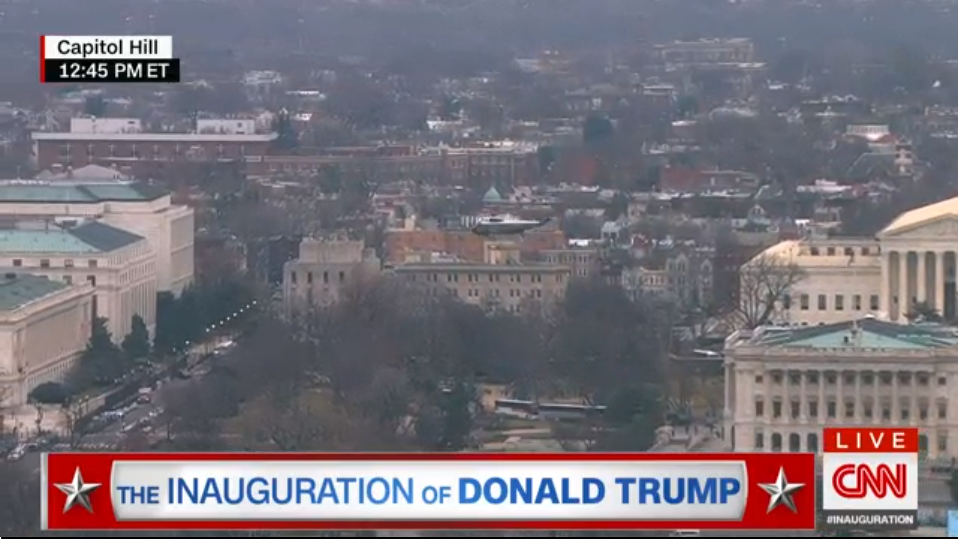 - 16:30: Θα αρχίσει η επίσημη τελετή ορκωμοσίας μπροστά στο Καπιτώλιο, με τραγούδια και μουσική. Ανάμεσα στους καλεσμένους θα βρίσκονται οι γερουσιαστές (ορισμένοι αρνήθηκαν να παρευρευθούν), οι ανώτατοι δικαστές, οι διπλωμάτες και το κοινό. Οι πρώην πρόεδροι των ΗΠΑ Τζίμι Κάρτερ, Τζορτζ Μπους και Μπιλ Κλίντον θα είναι παρόντες, καθώς και η Χίλαρι Κλίντον. Ο πρώην πρόεδρος Τζορτζ Μπους ο πρεσβύτερος, επειδή ασθενεί, δεν θα παραστεί.