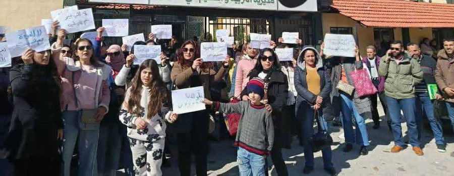 Στη Λατάκια, οι Αλαουίτες δάσκαλοι που απολύθηκαν από τις δουλειές τους διαμαρτύρονται για αυτή την θρησκευτική απόφαση εδώ και 5 ημέρες, μαζί με τα παιδιά τους.