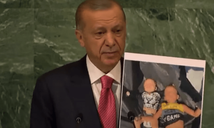 Οι συσκέψεις , οι δηλώσεις φανερώνουν μια πρόθεση πολεμικής επιχείρησης έναντι της Ελλάδος . Επικαλείται την κατάληψη Νησιών εκ μέρους της χώρας μας χωρίς να αναφέρει ποια είναι αυτά και πότε καταλήφθηκαν. Εδώ και καιρό θέλει μια εξωτερική επιτυχία για εσωτερική κατανάλωση. Απειλή εμάς με το βλέμμα στραμμένο στις ΗΠΑ έστω για ένα νεύμα ή μια χειραψία με τον Μπάιντεν.