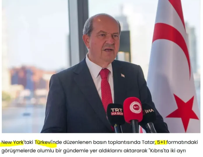 Σε συνέντευξη Τύπου που πραγματοποιήθηκε στο Τουρκικό Σπίτι στη Νέα Υόρκη, ο Τατάρ δήλωσε ότι συμμετέχουν στις συνομιλίες σε μορφή 5+1 με θετική ατζέντα, λέγοντας: «Η πρόοδος μπορεί να επιτευχθεί μέσω της συνεργασίας μεταξύ δύο ξεχωριστών κρατών στην Κύπρο. Δεν αποφεύγουμε τον διάλογο. Επιμένουμε στην κυριαρχία».
