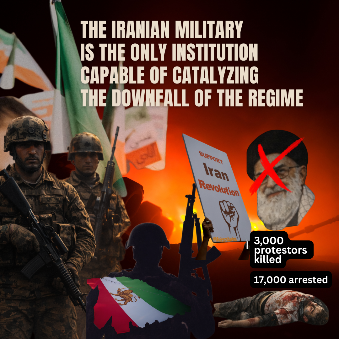 Τώρα, ωστόσο, χρειάζεται τη στήριξη της ισχυρότερης εγχώριας —όχι ξένης— δύναμης για να τη συνδράμει. Ο ιρανικός στρατός είναι ο πιο καίριος θεσμός της χώρας, ικανός να πυροδοτήσει την πτώση του καθεστώτος. Αποτελεί τον καθοριστικό παίκτη, με σημαντική εσωτερική επιρροή και τη δυνατότητα να προωθήσει την αναγκαία αλλαγή εκ των έσω, οδηγώντας τελικά σε αλλαγή καθεστώτος.