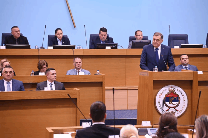 Κατά τη διάρκεια της ομιλίας του στην Εθνική Συνέλευση της Σερβικής Δημοκρατίας στην Μπάνια Λούκα, ο Ντόντικ υπερασπίστηκε με έμφαση τη συμφωνία, υπογραμμίζοντας ότι αποτελεί «το μοναδικό συνταγματικό και νομικό θεμέλιο της Βοσνίας και Ερζεγοβίνης» και προειδοποίησε ότι η παραβίασή της από ξένους παράγοντες «θέτει σε κίνδυνο την ειρήνη και την ισορροπία που επετεύχθη με τεράστιο κόστος»