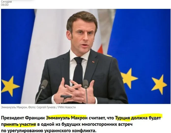 Ο Γάλλος πρόεδρος Εμανουέλ Μακρόν πιστεύει ότι η Τουρκία θα πρέπει να συμμετάσχει σε μία από τις μελλοντικές πολυμερείς συναντήσεις για την επίλυση της ουκρανικής σύγκρουσης.