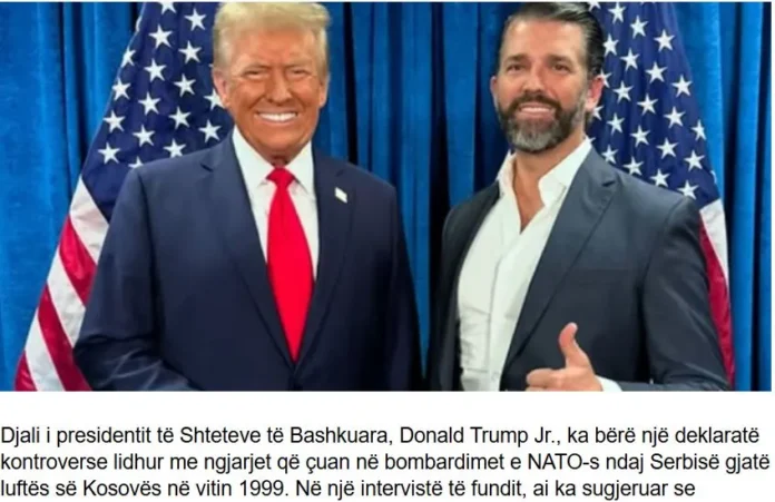 Ο γιος του Προέδρου των Ηνωμένων Πολιτειών, Ντόναλντ Τραμπ Τζούνιορ, έκανε μια αμφιλεγόμενη δήλωση σχετικά με τα γεγονότα που οδήγησαν στον βομβαρδισμό του ΝΑΤΟ στη Σερβία κατά τη διάρκεια του πολέμου του Κοσσυφοπεδίου το 1999, πρότεινε ότι η στρατιωτική επιχείρηση υπό την ηγεσία των ΗΠΑ ήταν ένας τρόπος για τον πρώην πρόεδρο Μπιλ Κλίντον να αποσπάσει την προσοχή από το σκάνδαλο της σεξουαλικής σχέσης του με τη Μόνικα Λουίνσκι.