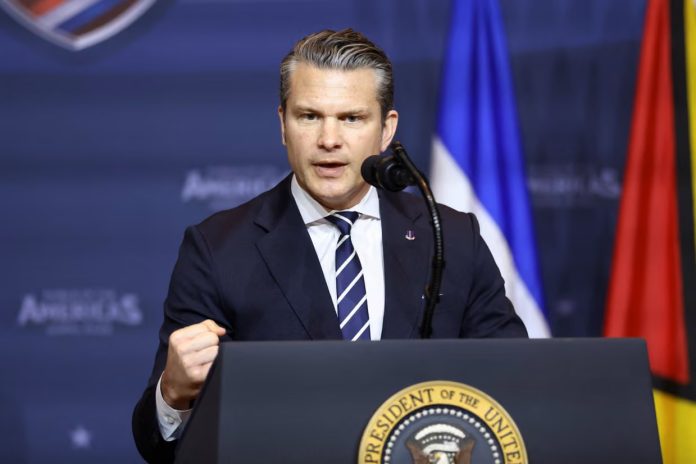 Ο Πιτ Χέγκσεθ, υπουργός Άμυνας των ΗΠΑ, μιλά στη σύνοδο «Shield of the Americas» στο Μαϊάμι της Φλόριντα, στις 7