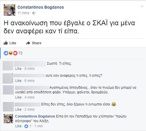 Απαντώντας στα σχόλια κάτω από την ανάρτησή του ο Μπογδάνος επανήλθε.
