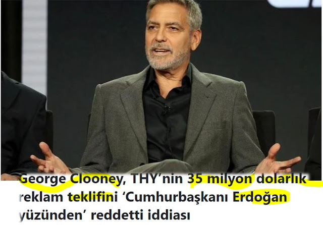 Επιπρόσθετα , ο ραδιοτηλεοπτικός σταθμός Cincinnati.com με έδρα το Οχάιο των ΗΠΑ ισχυρίστηκε ότι ο Κλούνεϊ απέρριψε τη διαφημιστική προσφορά 35 εκατομμυρίων δολαρίων της Turkish Airlines.