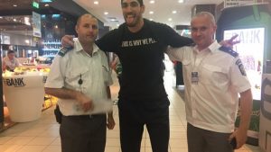 Ο Ενες Καντέρ στο αεροδρόμιο με αστυνομικούς.