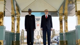 A handout photo made available by the Turkish Presidential Press Office on 19 October 2017 shows Turkish President Recep Tayyip Erdogan (R) and Nigerian President Muhhamadu Buhari (L) attending a welcome ceromony in Ankara, Turkey, 19 October 2017. EPA, TURKISH PRESIDENTAL PRESS OFFICE HANDOUT, EDITORIAL USE ONLY OCTOBER 20, 2017
