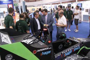 Στη φωτογραφία ο Γιάννης Παντής στα εγκαίνεια του περιπτέρου του ΑΠΘ στην περυσινή Διεθνή Έκθεση Θεσσαλονίκης, με τον Πρύτανη του ΑΠΘ Περικλή Μήτκα.