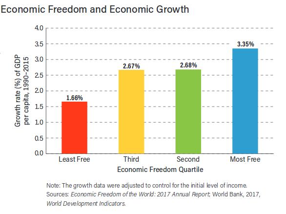 Oι χώρες με τη μεγαλύτερη οικονομική ελευθερία τείνουν να αναπτύσσονται πιο ραγδαία.