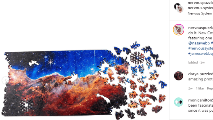 Οι πρώτες φωτογραφίες από το James Webb Space Telescope, το διαστημικό τηλεσκόπιο της NASA μας άφησαν άφωνους και περιδεείς. Ιδιαιτέρως η φωτογραφία της περιοχής δημιουργίας αστέρων στην Carina Nebula· η φωτογραφία είναι πλέον γνωστή ως «Cosmic Cliffs» και κατέκλυσε το Διαδίκτυο. Δεν άργησε να μπει και στα σπίτια· σε εκδοχή τριών διαστάσεων, με τη μορφή παζλ.