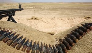Bullets lie next to a gun at a Sinjar Resistance Units checkpoint, a militia affiliated with the Kurdistan Workers Party, in the village of Umm al-Dhiban, northern Iraq, April 30, 2016. (photo by REUTERS/Goran Tomasevic)