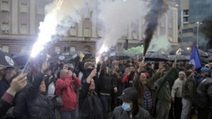 Supporters of the Albanian opposition shout anti-government slogans during an anti-government protest in Tirana, Albania. EPA, MALTON DIBRA