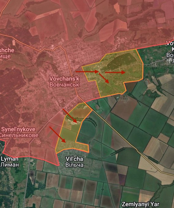 Μέτωπο #Βοβτσάνσκ – +3,68 τετραγωνικά μίλια προς τη Ρωσία – Οι ρωσικές δυνάμεις, μετά από 571 ημέρες μάχης, κατέλαβαν πλήρως την πόλη Βοβτσάνσκ. Οι ρωσικές δυνάμεις προέλασαν επίσης στο βόρειο τμήμα της Βίλτσα.