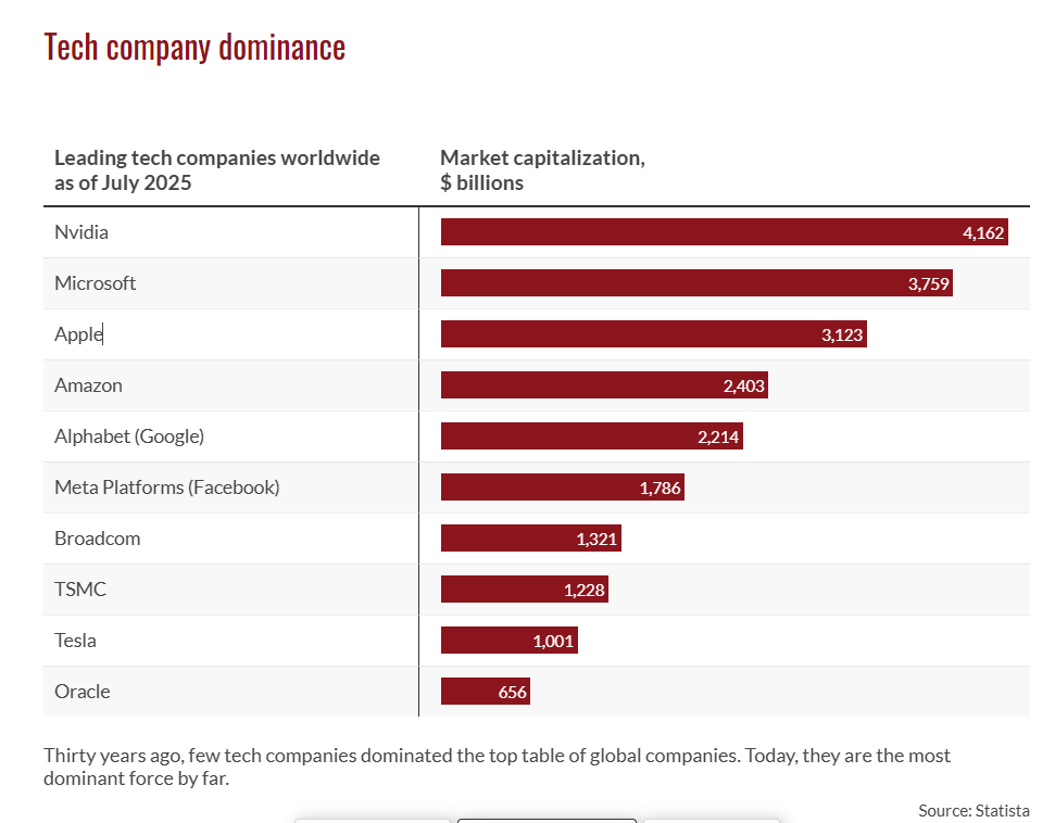 Η τεχνολογία είναι η οικονομία, με τους τεχνολογικούς κολοσσούς να κυριαρχούν στις παγκόσμιες αγορές