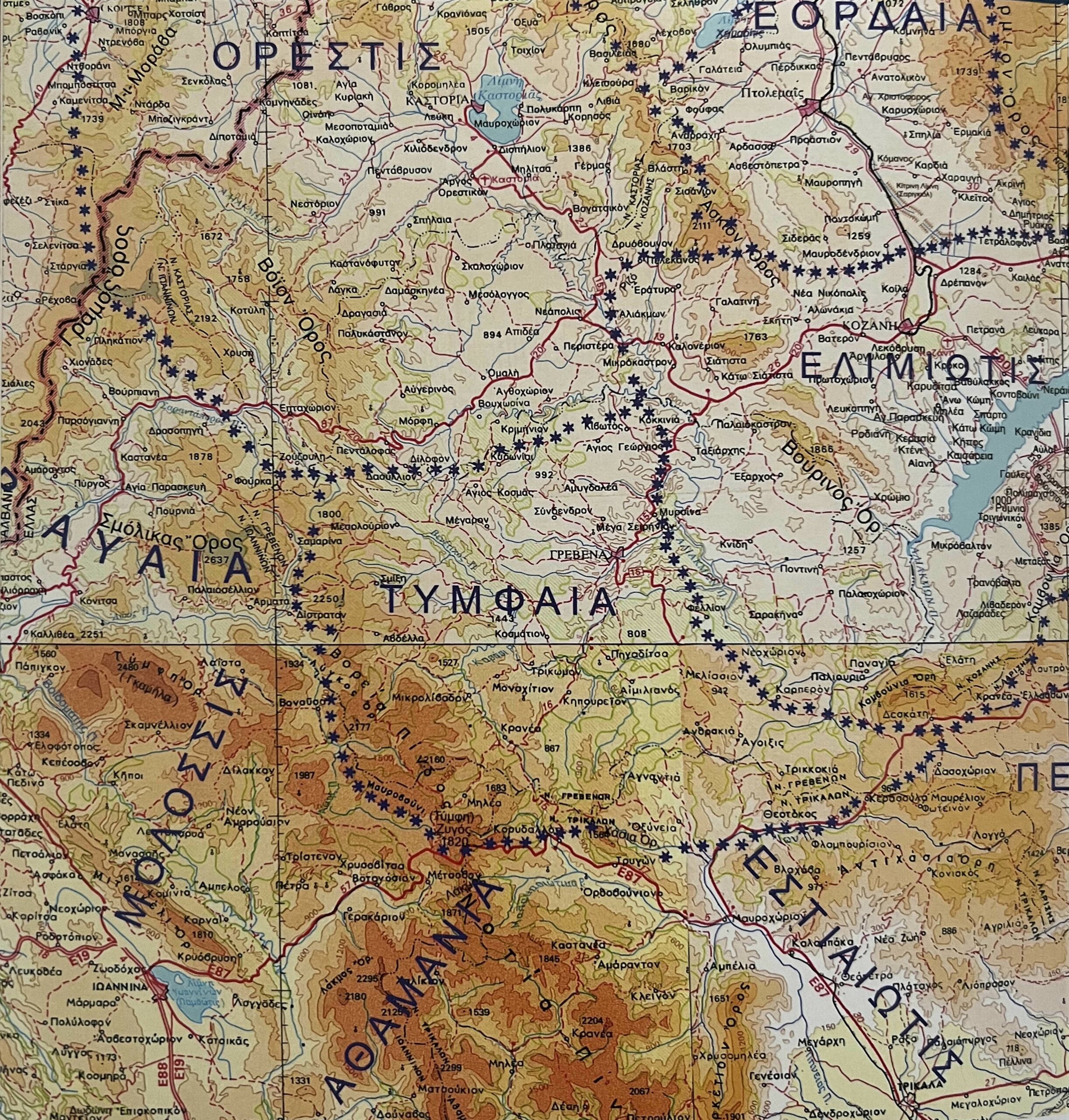 Εικ. 1 (εισαγωγής) : Χάρτης της Ανω Μακεδονίας (© Γ.Μεντεσίδη-Καραμήτρου, Μουσείο Αιανής).