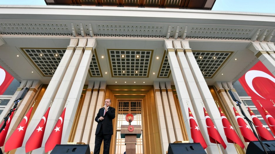 A handout photo made available by the Presidential Press Office shows Turkish President Recep Tayyip Erdogan speaking during a ceremony. EPA, PRESIDENTIAL PRESS OFFICE HANDOUT, EDITORIAL USE ONLY