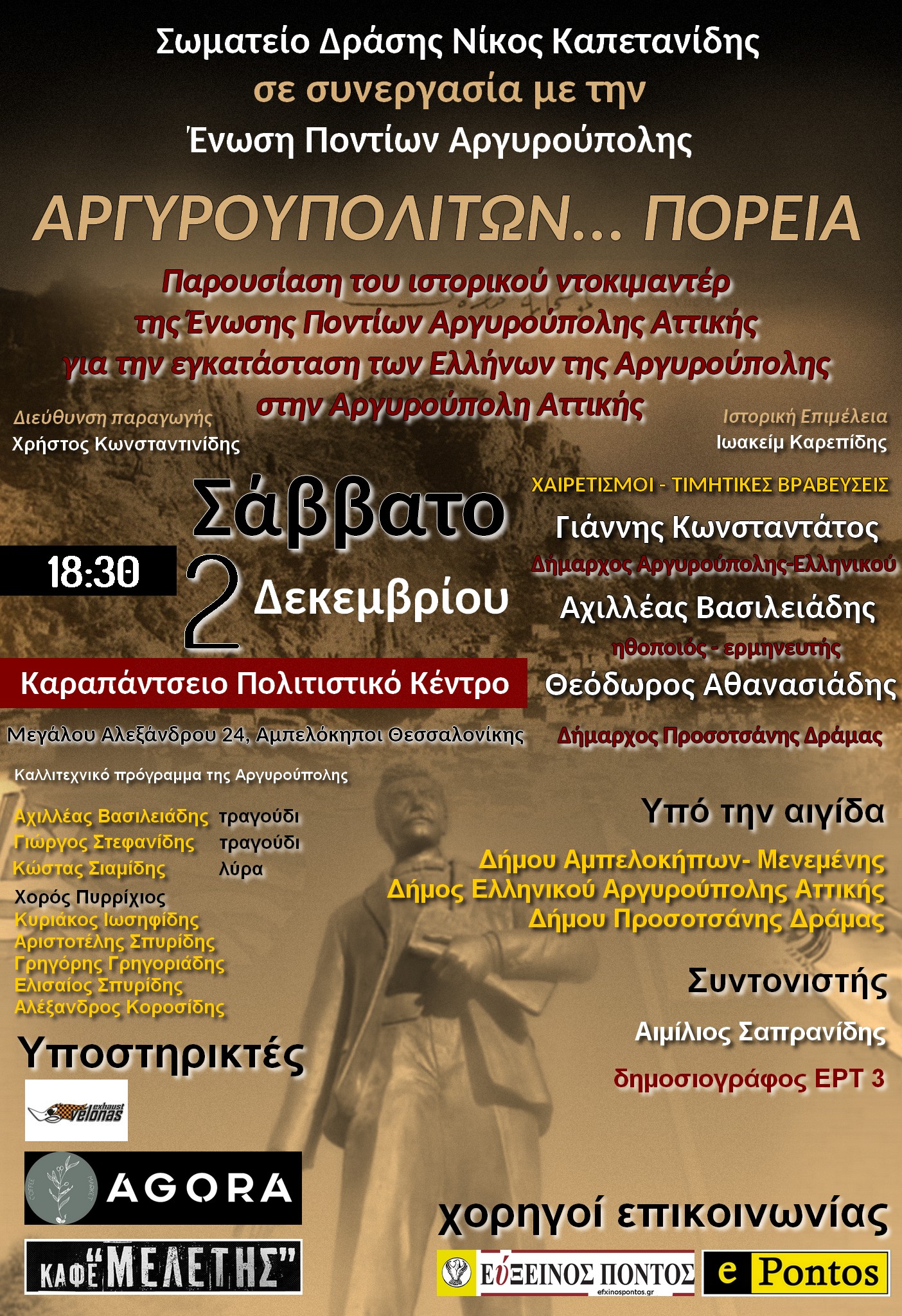Σας προσκαλούν στην προβολή του ιστορικού ντοκιμαντέρ παραγωγής της Ένωσης Ποντίων Αργυρούπολης Αττικής, με τίτλο: