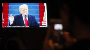 A man takes a photo when he watches live broadcast of the inauguration of US President-elect Donald Trump as the 45th President of the United States, at a bar in Beijing, China, 21 January 2017. EPA, WU HONG JANUARY 25, 2017