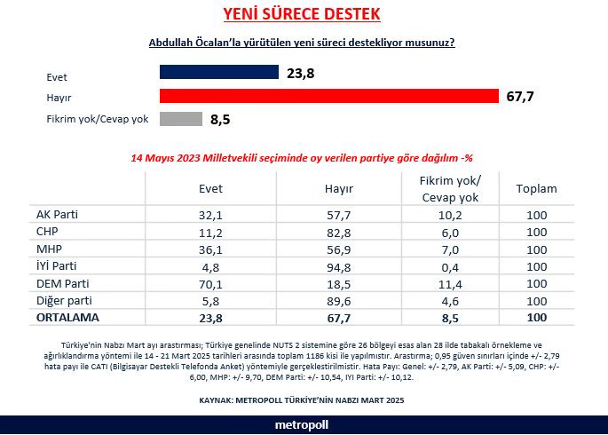 “Do you support the new process being carried out with Abdullah Öcalan?”. Red line indicates the dominant negative responses.
