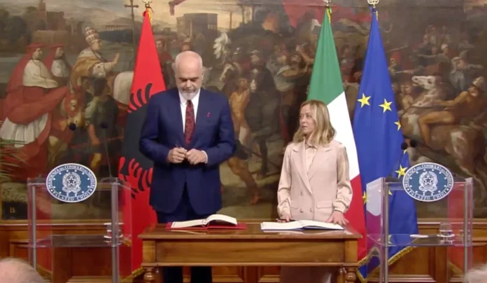 Όπως σημειώνεται, τον Νοέμβριο του 2023, με ένα χαμόγελο στο πρόσωπο και τα μάτια του να λάμπουν από τις αγκαλιές της Μελόνι, ο Έντι Ράμα υπέγραψε συμφωνία για την κατασκευή ενός κέντρου στην Αλβανία που θα φιλοξενούσε έως και 3.000 άνδρες Αφρικανούς μετανάστες, αλλά ο καθένας δεν θα έμενε πάνω από 30 ημέρες . Τότε το ονόμασαν συμφωνία «στρατηγικής συνεργασίας».