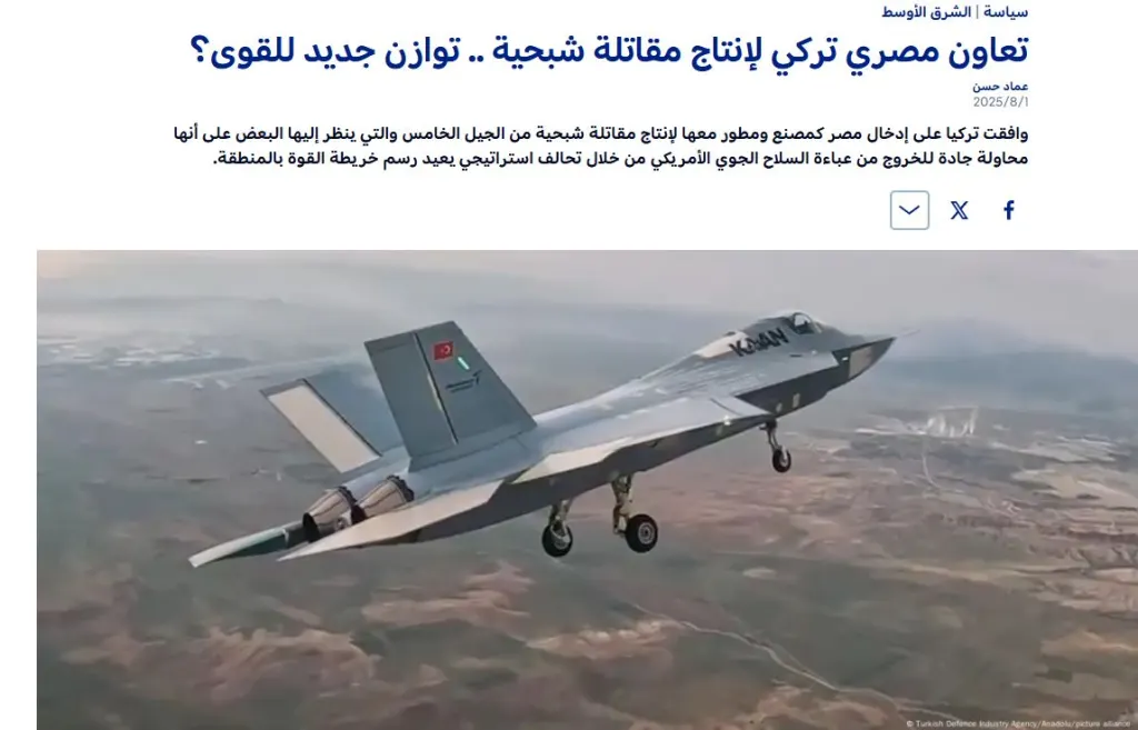 «Η Τουρκία συμφώνησε να συνεργαστεί με την Αίγυπτο ως συμπαραγωγός και κατασκευαστής ενός μαχητικού stealth πέμπτης γενιάς, κάτι που ορισμένοι θεωρούν ως μια σοβαρή προσπάθεια αποδέσμευσης από τη σκιά της Πολεμικής Αεροπορίας των ΗΠΑ μέσω μιας στρατηγικής συμμαχίας που επανασχεδιάζει τον χάρτη ισχύος στην περιοχή», γράφει η Deutsche Welle Arabic.