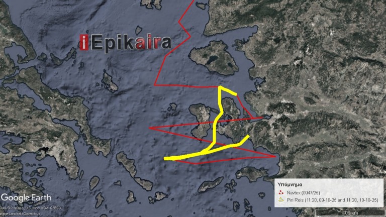Από το στίγμα του Piri Reis (από 09:40-05/10/25 μέχρι 09:40-06/10/25 και από 11:20-09/10/25 μέχρι 11:20-10/10/25) προκύπτει ότι το τουρκικό ερευνητικό προσέγγισε τα απώτατα όρια των Navtex που εξεδόθησαν τα οποία σχεδόν αγγίζουν τα όρια της Γαλάζιας Πατρίδας. Σημειώνεται επίσης ότι κατά τη δεύτερη έξοδό του (από 11:20-09/10/25 μέχρι 11:20-10/10/25), ελάχιστη δημοσιότητα δόθηκε επί του ζητήματος, με αίολες αναφορές για τις ενέργειες του στόλου. Ο δε ΥΠΕΞ Γ. Γεραπετρίτης δήλωσε μάλιστα ότι: «Πρόκειται για έρευνα επιφανειακή, δεν καταλαμβάνει ελληνική υφαλοκρηπίδα και άρα δεν αντίκειται στο Διεθνές Δίκαιο. Αυτό που είναι αντίθετο στους διεθνείς κανονισμούς είναι η NAVTEX που εκδόθηκε και η οποία απαντήθηκε αμέσως από την Ελλάδα, η οποία εξέδωσε δική της αντί-NAVTEX. Η ίδια η έρευνα δεν μας επηρεάζει. Σε κάθε περίπτωση είναι κάτι που το παρακολουθούμε».