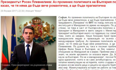 Ο Βούλγαρος πρόεδρος, Ρόσεν Πλεβνέλιεφ, επεσήμανε ότι δεν μπορούν να ενταχθούν τα Σκόπια στην ΕΕ με την ιδεολογία του μακεδονισμού, γράφει το βουλγαρικό πρακτορείο Fokus