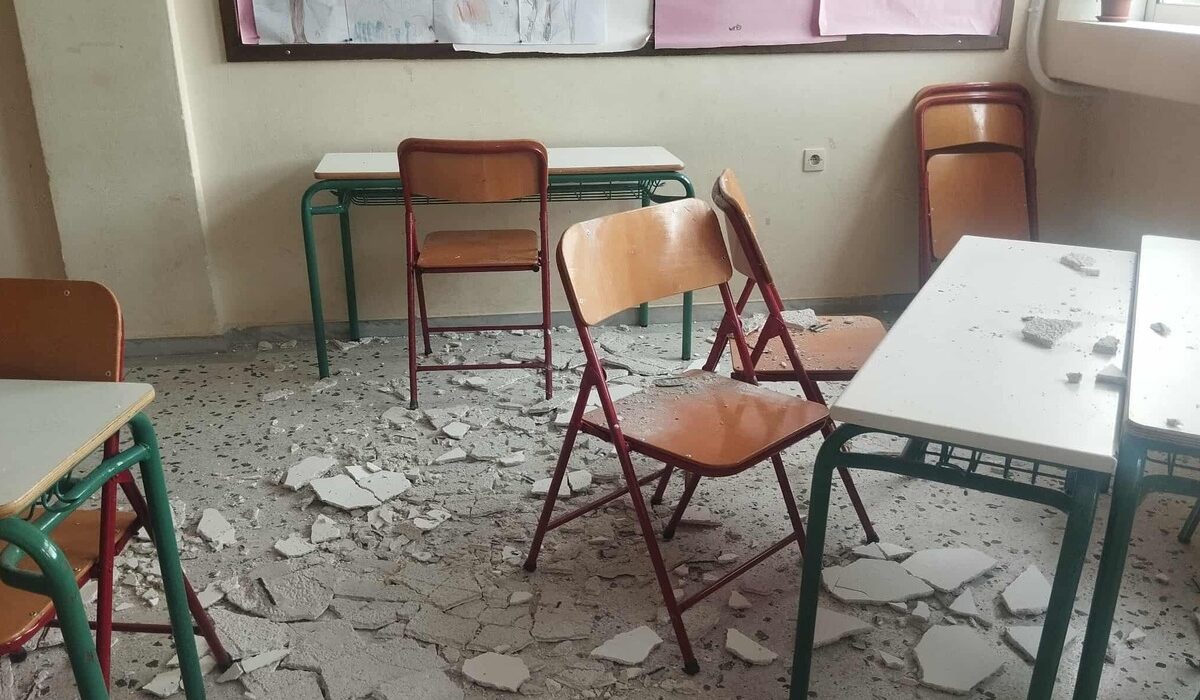 Σύμφωνα με την καταγγελία του Συλλόγου Εκπαιδευτικών Π.Ε. «Κώστας Σωτηρίου», ξαφνικά αποκολλήθηκε μεγάλο κομμάτι σοβά του ταβανιού σχολικής αίθουσας.
