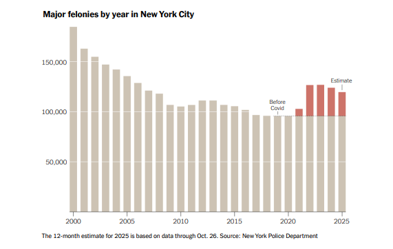 Παρόλο που η εγκληματικότητα έχει μειωθεί τα τελευταία δύο χρόνια, οι δημοσκοπήσεις δείχνουν ότι πολλοί Νεοϋορκέζοι εξακολουθούν να ανησυχούν για αυτήν. Οι ανησυχίες τους είναι βάσιμες. Η εγκληματικότητα παραμένει σημαντικά υψηλότερη από ό,τι ήταν πριν ξεσπάσει η πανδημία του Covid-19.