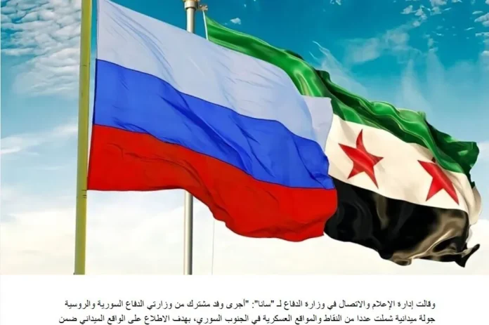 Το γραφείο Τύπου του υπουργείου Άμυνας της Συρίας ανέφερε ότι κοινή αντιπροσωπεία των Υπουργείων Άμυνας της Συρίας και της Ρωσίας πραγματοποίησε περιοδεία πεδίου που περιλάμβανε διάφορα στρατιωτικά σημεία και εγκαταστάσεις στη νότια Συρία.